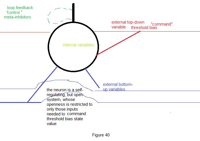 To their credit, they correctly identify the concept of neurosemantic loops with specific activity thresholds maintained by feedback mechanisms, but without invoking the specialist (and arcane) terminology of cybernetics proper, any such discussion will necessarily be ill-focused and therefore lacking a usefully specific conclusion. It is the precise nature of the feedback mechanisms, as discovered independently by Dyer** and also by Feldman*** which provide the answer to these questions.