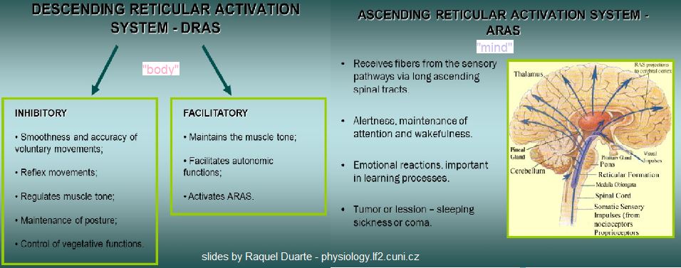 (d) matches the neuroanatomic division of ascending and descending reticular activations systems (ARAS and DRAS).